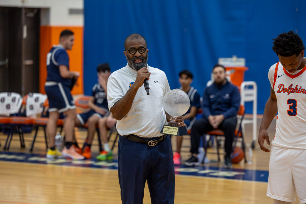 Clark, still playing with a face guard after suffering a broken nose in a December 30 win over Lincoln Park, wasted no time scoring all of his points in the first quarter versus Alcott College Prep, putting on a highlight reel performance with 19 points to gain sole possession of the scoring title with his 1,830th point in a Dolphins uniform. His name is now atop a list among the elite of Whitney Young’s honor roll of boys basketball greats the likes of Jahlil Okafor (2014), Javon Freeman-Liberty (2017), and D.J. Steward (2020), all playing under the guidance of current Dolphins mentor and head coach Tyrone Slaughter.