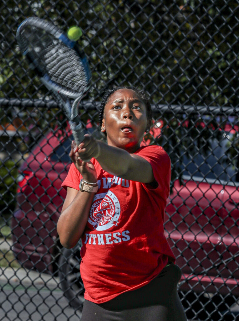Manadan may have been the first winner of the day, but her teammates Harper Wright and Imade Osaghae weren’t far behind. The duo defended their title in No. 1 doubles from a year ago, defeating Lane’s Athena Solberg and Gia Shah 6-0, 6-2.